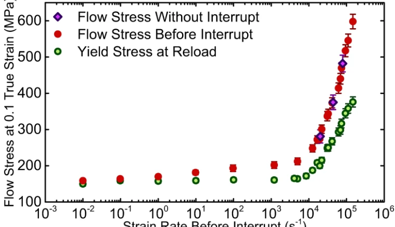 Metal plasticity is now known to occur in discrete events arising from the self-organisation of dislocations into ‘avalanches’ under applied stress. Here we extend avalanche plasticity to high strain rates, to explain the sharp uptick in the strength of copper above 10,000/s.